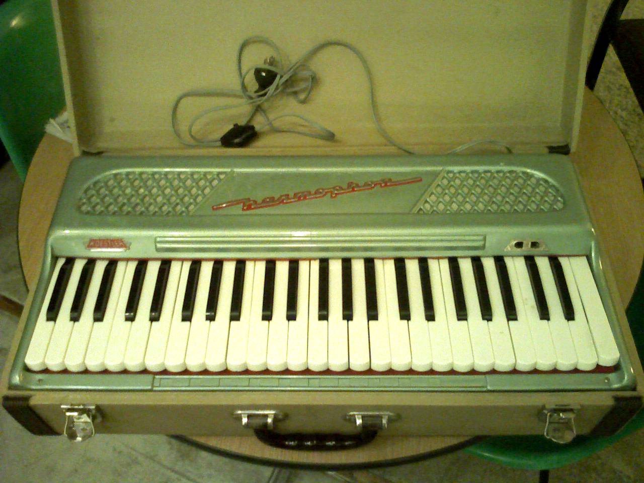 Seems to be a electric version of a harmonium (bellows powered keyboard thing)
